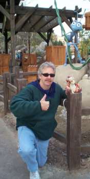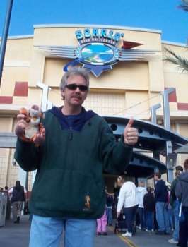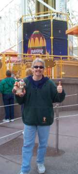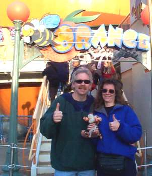 "Golden Dreams" is a movie about the real-life people who shaped the history of California - from the Native American tribes to the Silicon Valley dotcom millionaires. It's narrated by the Spirit of California, Califia, portrayed by Whoopi Goldberg - and there's an interesting effect associated with that, but I won't spoil it. :-) We actually saw this on the night we were here for the sneak preview, since one of the clues on our scavenger hunt that night required us to see the movie (though I knew the answer just from the clue). The movie was fine, but not something that I'm going to rush back to see again and again. Lee likes that sort of thing more than I do (he always wants to see The Amercian Adventure and Circle of Life at Epcot), so it gets a thumbs up from him and a so-so from me and Tigger.