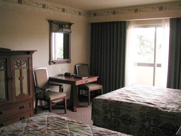 There had been an ad in the San Diego paper advertising special rates at Disney's Paradise Pier Hotel and "lower rates" at the other Disney hotels, but when I called and asked for the Grand Californian, by far the best deal was the Annual Passholder rate. Availability was no problem, either, even though it was a holiday weekend and we were only staying one night! Of course at that rate we *didn't* get a park view - many rooms have a view looking directly into Disney's California Adventure (DCA). Our room was actually *directly* over the big World of Disney store on the Downtown Disney side, though fortunately it wasn't noisy.