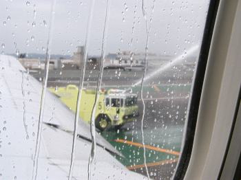 As we were waiting in the gate area they announced that this was going to be the final flight for our pilot, Captain Dave Wegher, retiring after 32 years. When we taxied out to the end of the runway the firetrucks were waiting, and sprayed the plane with water. I'm not sure why they do that, but it was a nice sendoff. We were in the air by 9:15.