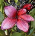 (Left to right: red plumeria, LPFs (little pink flowers), white hibiscus, and MPF (medium purple flower)
