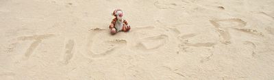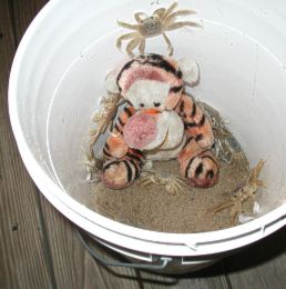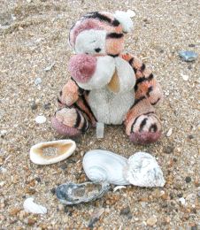 | Tigger and his shell collection...some oyster and clam shells, and a whelk he named "Lawrence". (And no, it's NOT true that if you hold a whelk shell to your ear you hear accordion music.) :-) | ![]() |