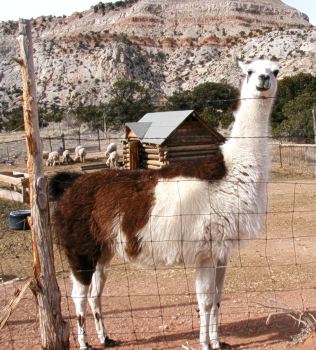 Near Muley Twist there was a corral with a flock of sheep in it - and one llama. We figured he must be their guard - llamas make very good guards, since they aren't afraid of coyotes or dogs. We don't actually *know* that his name was Pedro...but that's what we called him. :-) We pulled up by the fence and he got up and came right over to check us out, posed for a couple of pictures, decided we weren't a threat and turned around and left. Pedro has attitude. :-) And he's awfully cute, too!