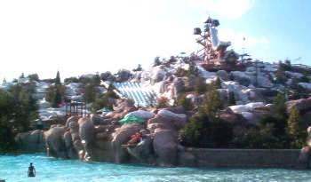 Teamboat Springs, the "Family Raft Ride" was where we went first. The line was about 15 minutes long. It was great fun, though they have changed the loading procedure since we were there in December 1998. It used to be that the Cast Members pushed you off (and usually gave you a spin to start out), but now there's a moving platform that dumps you onto some rollers and off you go. (Going over the rollers doesn't feel very good!) But that means no spin - I don't think we got the height up on the sides that we did when we were last here with Gary and Sia. But it was still a fun ride, and we did it again - the wait was a little longer the second time. The waits for the two big slides were MUCH longer, though - we could see the ends of the line from where we were. They were both at least 30 minutes.