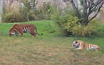 There were two tigers out that were being quite entertaining - they were stalking and pouncing on each other, and having a good time. It's just like watching our cats - especially Taj and Lia - only these cats are a WHOLE lot bigger!!!