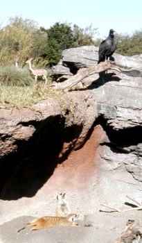In our typical oh-so-efficient park-touring fashion (not) we went over to Dinoland to get a Fastpass for Primeval Whirl - but they weren't distributing them, so we went back to Asia to see Flights of Wonder. There was nothing new in the show, but we did get to sit in the first row, and that was new for us! We still enjoy seeing the birds' behaviors...and for some reason the "Guano Joe" story and jokes don't wear thin and are still funny. The guy who plays Guano Joe certainly has a lot of staying power - he's been there for at least three years.