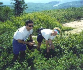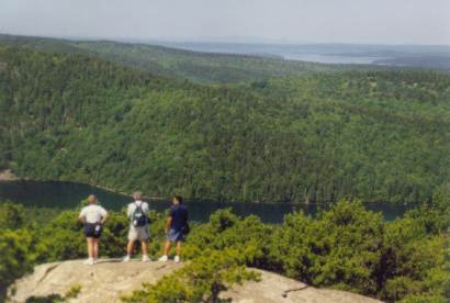 There were lots more blueberry patches at the top of the mountain so we had some more of those before we headed down the other side of Acadia Mountain. We passed some people who had a toy poodle with them - pretty impressive for him to climb that mountain, though he probably had a little bit of help on some of the steep parts. The trail went down to Somes Sound, and Walt and Barb soaked their feet in it for a little while - but that water is still pretty cold. :-)