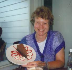 After showering we went back into town and had dinner at the Parkside again. I had (what else?) blueberry pie for dessert, as did Walt, but Lee and Barb had the chocolate truffle with raspberry sauce. It was deadly chocolate - Barb couldn't finish hers, but Lee managed all of his other than the one bite that I had.