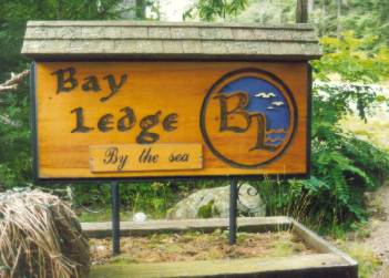 We called the place we were staying the "Inn of Many Names"...the official name on the reservation confirmation (and, most importantly, on the shampoo bottles and soaps! ;-) ) was "Inn at Bay Ledge", but the road signs directing us there called it the "Bay Ledge Inn", or just "Bay Ledge", and the wooden sign right in front of it said "Bay Ledge by the Sea". :-)