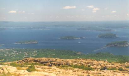 Most of Acadia National Park is located on Mt. Desert Island (usually pronounced dessert, as in chocolate mousse, rather than desert, as in sand and camels), though there are some other pieces of it on some neighboring islands and the mainland. It was established in 1919, and was the first national park east of the Mississippi. One very interesting thing about Acadia is that all the land was *donated* to the government by private citizens, rather than being established from land the government already owned. The area used to have a number of large summer "cottages" owned by the Rockefellers, Vanderbilts, Fords, Astors, etc., but a huge fire in 1947 destroyed many of them, and most were never rebuilt.