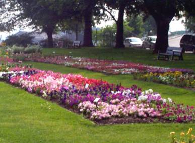 The Carriage Roads are a unique feature of Acadia National Park. They were built by John D. Rockefeller, Jr., between 1913 and 1940, and presented as a gift to the park and its visitors. They were intended strictly for horses, carriages, and walkers, and were given with the understanding that motorized vehicles would *never* be allowed on them - and that is still the case, though they do allow bicycles now. They are lovely roads, built to fit into the landscape and visit places with many scenic views. Over the years they had fallen into disrepair, but now they are being restored, an effort that should be completed in 1999.