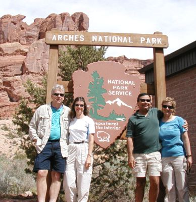 On New Year's Eve 2002, the four of us were sitting around planning our trips for 2003 - skiing, hiking, and a trip to Virginia in October. Out of the blue Walt(!) suggested a trip to Utah's red rock country. I'd visited some of it on a family vacation when I was 8 years old, so it had been a while (how's *that* for understatement?), but the other three had never been there. We pulled out a map and mapped out a sketchy trip, and I later went to the AAA website and had them send me additional maps and trip info. A few weeks later Barb and I sat down and worked out more of the details of where we planned to be on what nights, and in March she did a lot of research and selected and made reservations at bed and breakfast places. We made some tentative plans for hikes and activities that we wanted to do, but we knew a lot of it would just have to wait until we got there and could talk to rangers and our B&B hosts.