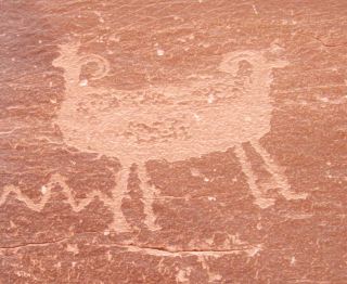She also told us about "desert varnish" - the dark color that appears on some sandstone cliffs. (You can see it on the top left in the picture below.) It's what most petroglyphs are carved into. Depending on who you talk to, it's either caused by rain, dust, bacteria, and manganese, or it's a chemical reaction between rain, dust, and manganese.
