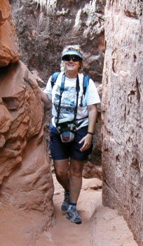 Our hike started at 4:00 and ended at 7:00. It was only about two miles, but there was some rock scrambling involved and that took time with a large group, plus we stopped a lot so Robin could show us various geologic features and talk about them. It was another windy afternoon, and some of the areas we were in had a lot of blowing sand. Robin told us more about cryptobiotic crust (we learned that "cryptobiotic" means "hidden life") and the importance of staying off of it. For most of our hike in the Fiery Furnace we were in sandy washes or on rock.