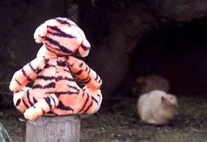 Tigger watches the capybaras, the world's largest rodents, at Animal