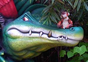 This gator is no doubt trying to figure out how he can get Tigger *off*