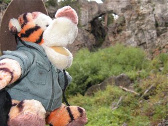 | In the Norris Geyser Basin Visitor Center, Tigger learns how geysers work...turns out it's not just a huge can of seltzer water! | ![]() |